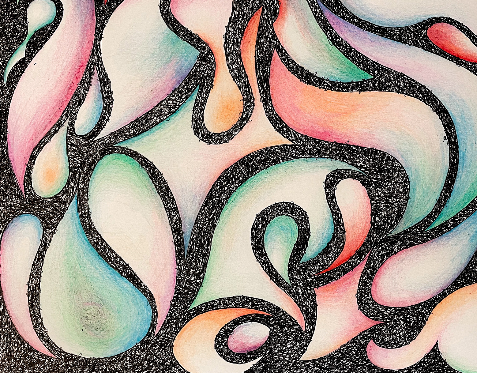Repurposed from an at-home paint & sip, post-breakup. The original painting contained only the avocado and an opaque, red background. The vibrance of the background gradually fades, from right to left, to represent the flattening of emotions during the grieving process. The crack to the pit (heart) was added in the revision process, as well. I enjoyed trying new drip techniques and funky lettering!